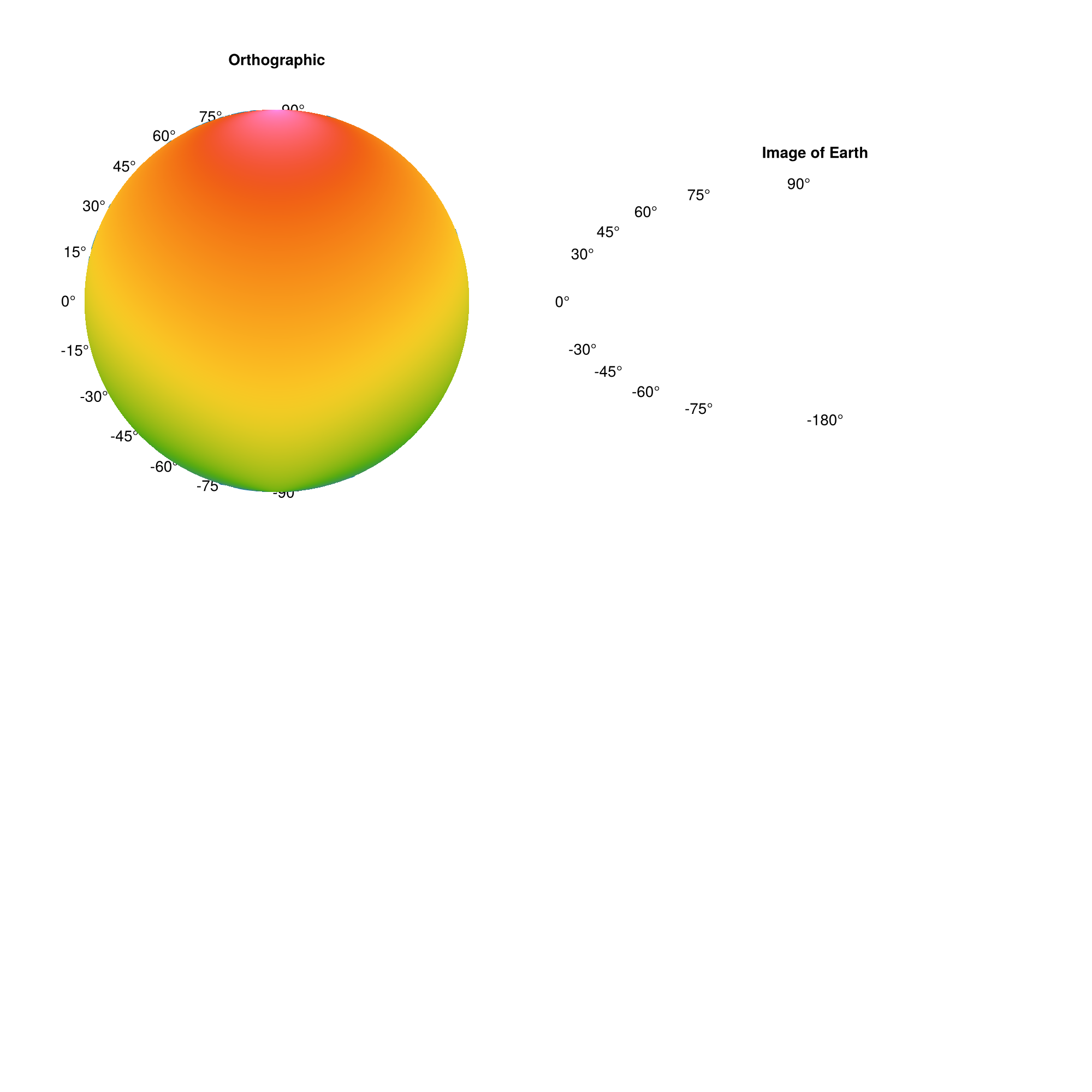 ga2 = GeoAxis(fig[1, 2]; dest = "+proj=moll", title = "Image of Earth\n ")
