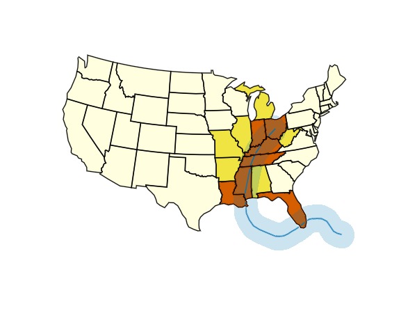 direct_states = view(states_df, GO.intersects.(states_df.geometry, (katrina_path,)), :)