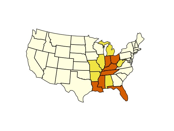 affected_states = view(states_df, GO.intersects.(states_df.geometry, (buffered_katrina_path,)), :)