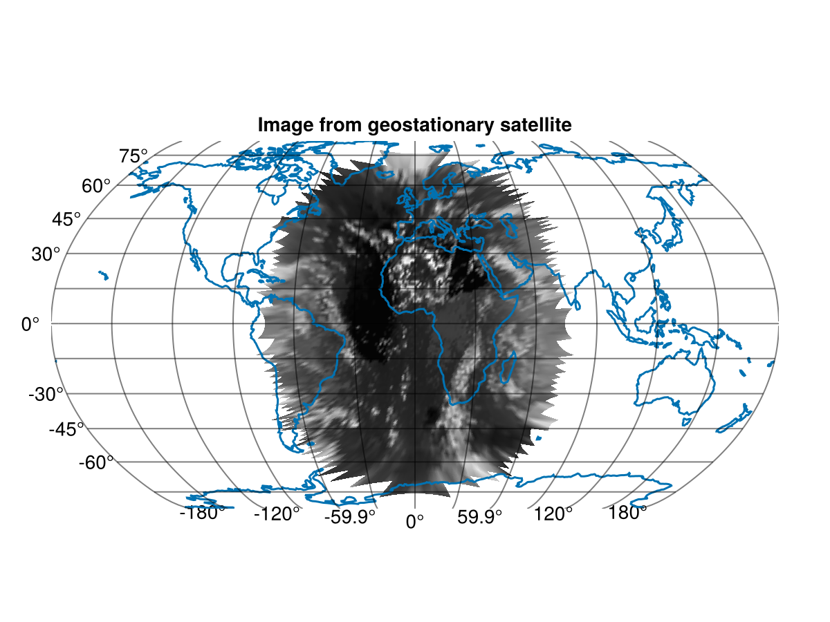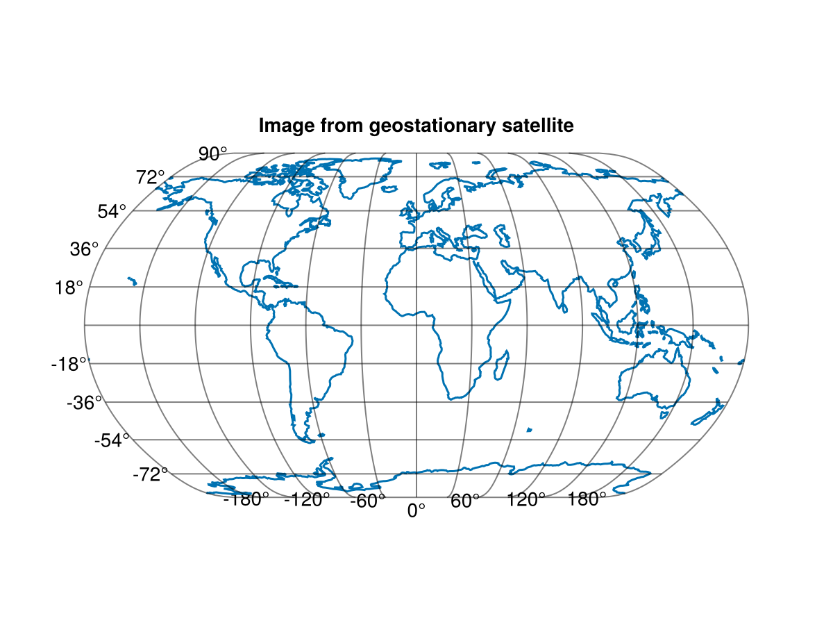 ga = GeoAxis(fig[1, 1]; dest = "+proj=natearth", title = "Image from geostationary satellite")