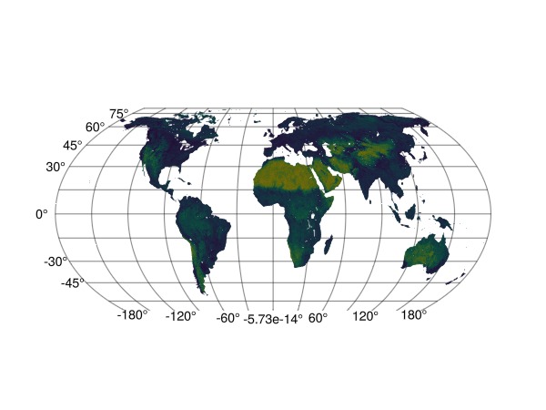 using GeoMakie, CairoMakieFirst, we can load a Raster from the EarthEnv project, which represents habitat or ecosystem heterogeneity.